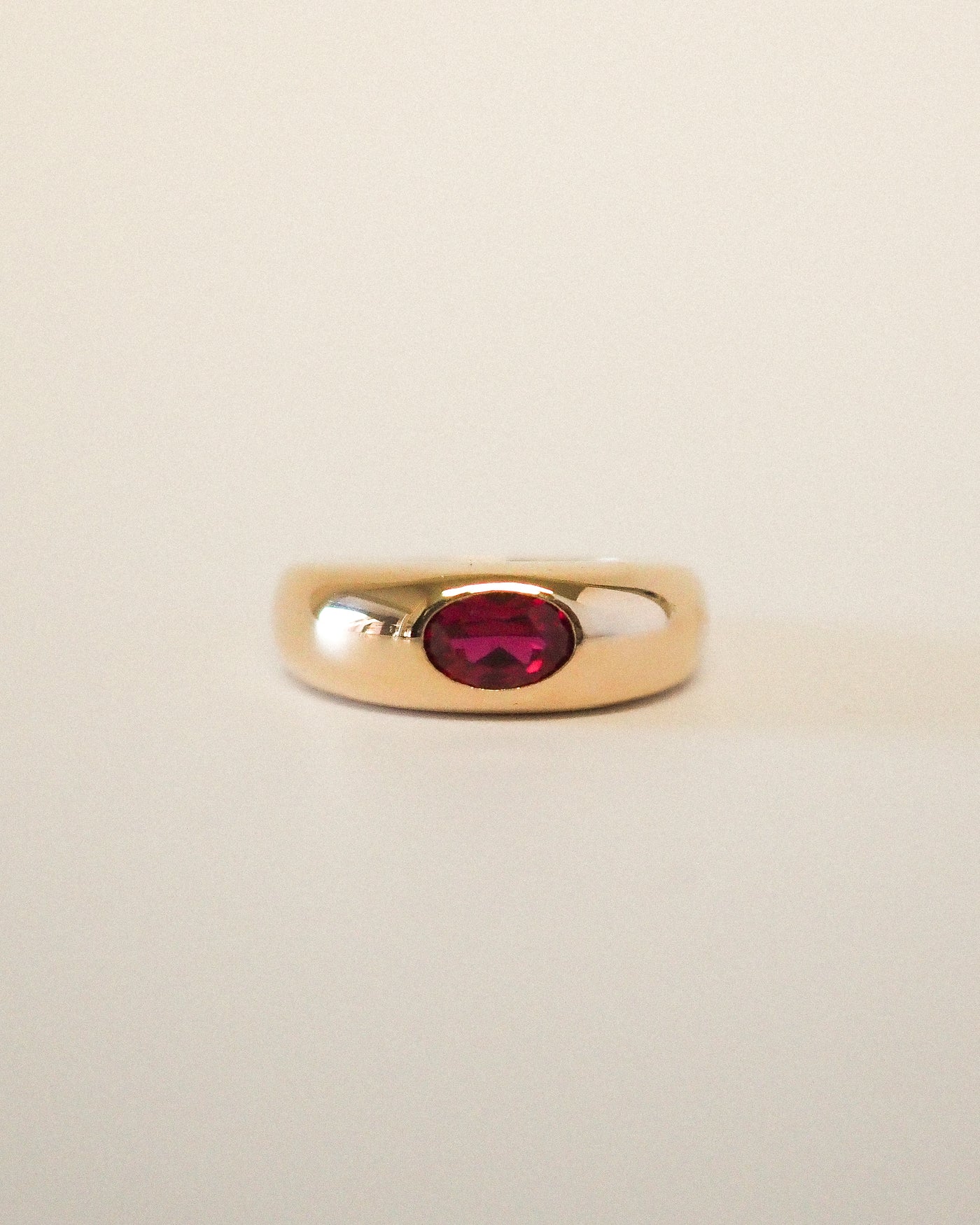 Whether worn alone as a statement pinky ring or stacked with your favorite bands, Annabelle brings a confident pop of color to any look. As July’s birthstone, the ruby adds an extra layer of meaning—symbolizing love, passion, and strength.